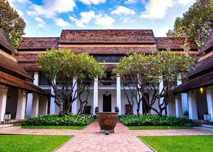 拉查曼卡酒店是清新的清迈小城里独特的存在,酒店坐落在清迈最大的寺庙帕邢寺旁边,绝对的闹中取静。这里还是清迈著名的周日夜市的一端入口,如果盆友们要来清迈游玩,非常推荐参加周日夜市,也建议大家选择周日入住拉查曼卡酒店,逛夜市方便哦。酒店的建筑格局是四合院式。抵达酒店时先看到的是酒店的餐厅,两层白色的小屋。走进酒店的大门,曲曲折折的小径延伸开来,很有意境。酒店的客房多数只是一层式的,主楼有两层楼,屋顶是泰北传统的屋瓦,走廊上放置着中国古董木箱,休息厅悬挂着中国水墨画与泰国古画,灯饰则统一为泰北灯笼造型,中泰混搭的理念给你的清迈之旅增添了不少趣味。