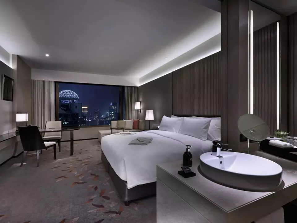 曼谷大仓新颐酒店(The Okura Prestige Bangkok)位于于曼谷暹罗中心,与BTS轻轨的Ploen Chit站相连,步行5分钟可达。曼谷大仓新颐酒店由巴马丹拿负责设计,设计灵感来自传统的泰式欢迎手势“Wai”,将文化认同与现代奢华无缝融合。曼谷大仓新颐酒店是一家极富日本传统文化的五星酒店,风格优雅时尚,以沉稳色调秉承大仓“简与雅”的理念;酒店大堂位于24楼,棕黑色的大理石地板,透明的巨型落地玻璃幕窗,白色的皮质沙发,时尚而华贵。