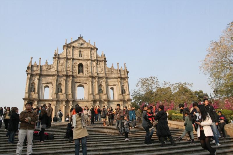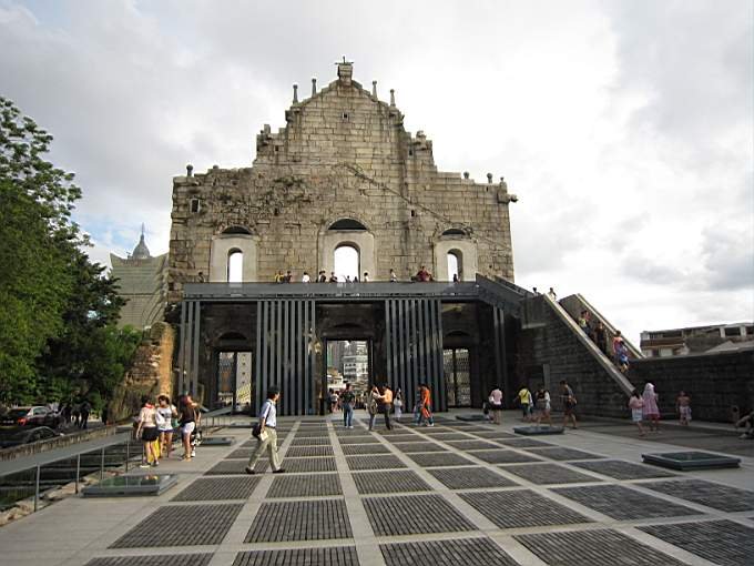 大三巴牌坊(葡萄牙语:Ruínas da Antiga Catedral de São Paulo),别名圣保禄大教堂遗址,位于中国澳门特别行政区花王堂区炮台山下。大三巴牌坊前身为圣保禄教堂,始建于明万历三十年(1602年),于清道光十五年(1835年)1月26日被大火焚毁,仅余下大三巴牌坊。大三巴牌坊的雕刻和镶嵌较为精细,融合了东西方建筑艺术的精华,是一个中西文化交融的艺术品。大三巴牌坊前临68级石阶,前壁遗址为23米宽,25.5米高,为巴洛克风格,以花岗岩建成,上下共分五层。2005年,大三巴牌坊与”澳门历史城区“的其他21栋建筑物文物成为联合国世界文化遗产。大三巴牌坊是澳门标志之一,也是澳门八景之一的“三巴圣迹”。