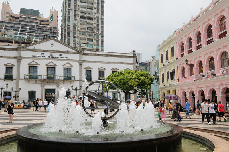 议事亭前地因地处议事亭(澳门市政厅前身)而命名;现今的议事亭前地,左侧为龙记酒家因位处明朝起中国官员以至葡萄牙人议事机构──澳门议事会(即今民政总署大楼)前,故而得名。上世纪70 年代,广场中央新建一座喷水池,本地居民又俗称此地为“喷水池”。开埠至今,议事亭前地一直是澳门的市中心,许多节日庆祝活动都在此举行。议事亭前地为处澳门中心区域,历来上任的澳门总督,必在此举行仪式,检阅驻澳门的海陆军队。议事亭前地坐落在民政总署总部对面,整个广场由碎石子铺成波浪状,附近道路已辟为行人专用区,周围有长椅,所以人们都喜欢聚集在这里憩息和休闲。
