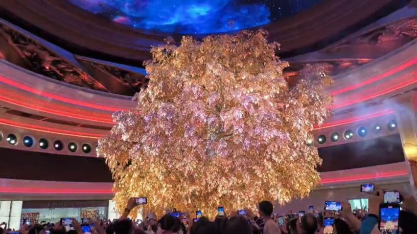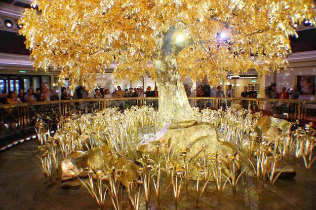 澳门永利发财树,价值2亿,每片叶子都是纯金打造,5分钟经历四季变化,春为绿,夏为红,秋为金,冬为银!见者发财澳门永利发财树。