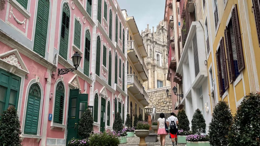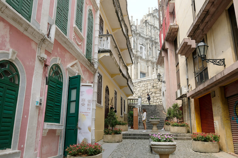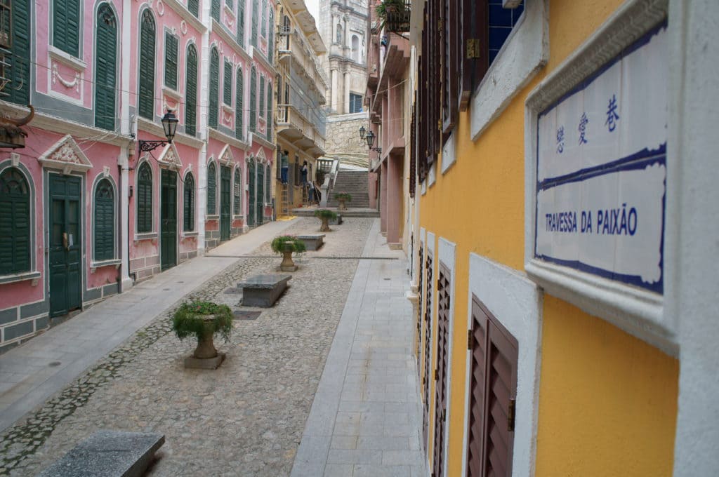 沿大三巴牌坊右边走下去,有一条甚少人经过的小横巷,它有一个浪漫名字——恋爱巷。这条巷子全长50米,至今已有80多年的历史。电影《伊莎贝拉》,《游龙戏凤》就在这恋爱巷取景。如今恋爱巷为旅游景点之一,这里已被划成行人专用区,并已有美化工程,令恋爱巷更有特色。曾有电影以及电视剧在恋爱巷取景,此处亦是拍婚纱照的好地点。恋爱巷的名字来自早期葡文名"Travessa da Paixão","Paixão"可解释为迷恋和激情,而恋爱巷两旁的建筑物充满了欧陆风情,无意间与这名字的意思暗合-浪漫动人。走在巷里,似是置身欧洲石径小路中。澳门民间传说,但凡走过恋爱巷,不久就会遇上恋爱。