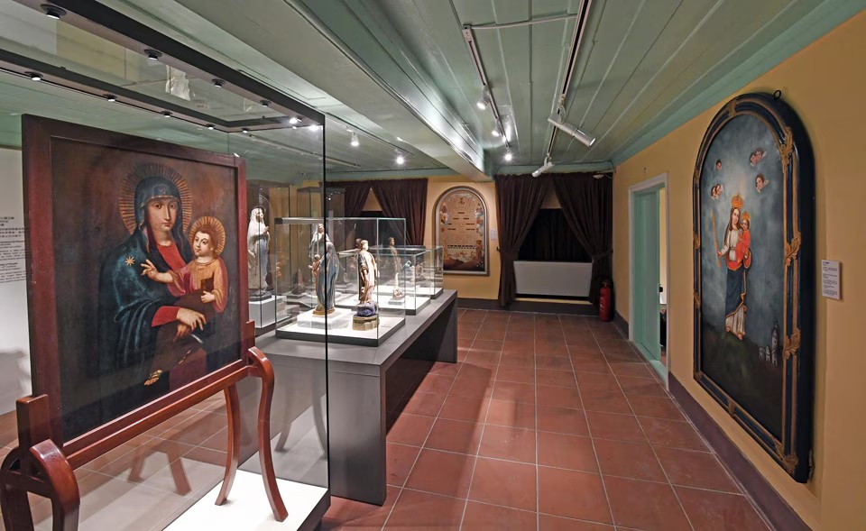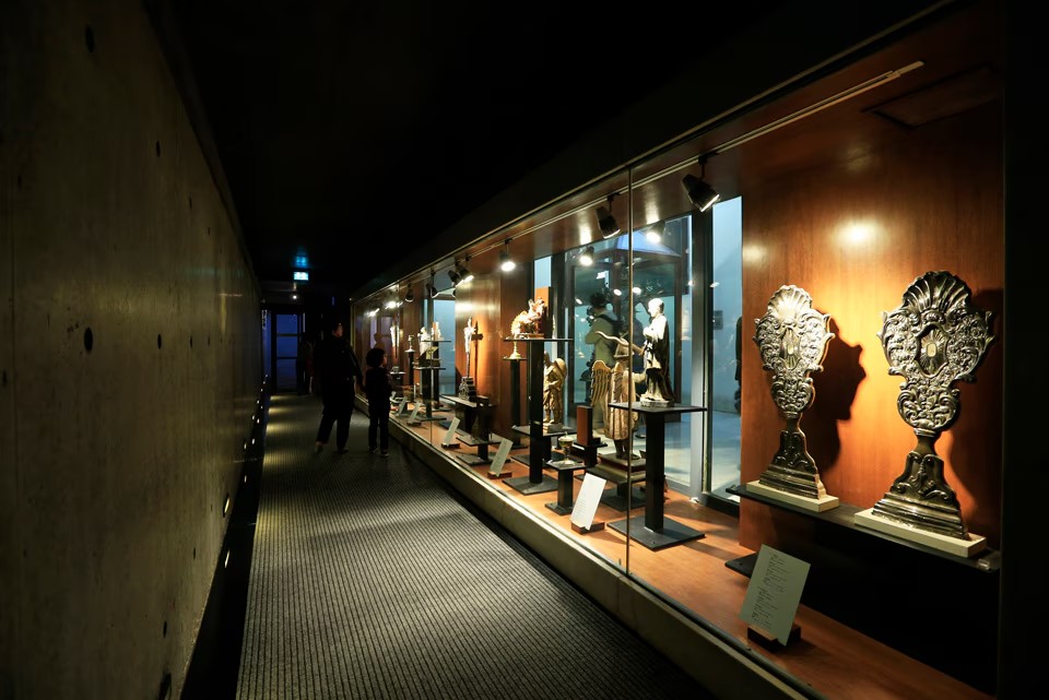 位于进入大三巴牌坊后,是一座下沉式博物馆,馆内地下圣堂的墓室中存放着300前的教徒遗骨,但是我们进入并看不到。唯一能看到的是北墙两侧的玻璃柜里有部分人骨,这是73名日本和越南殉教者的遗骨。走过存骨堂,就可进入天主教艺术馆。艺术馆并不大,但存放着六大宝藏很有看点。