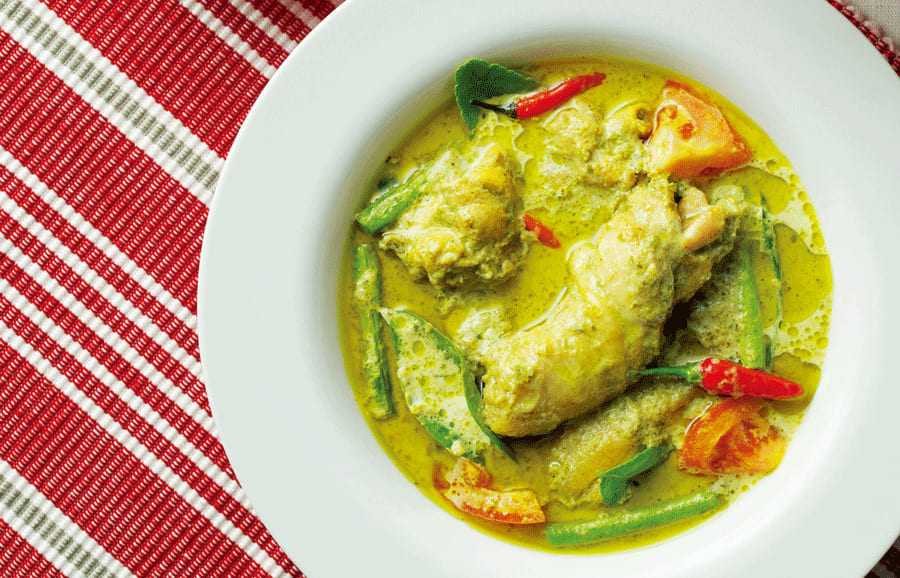 其独特之处主要在于运用绿辣椒与椰奶经过精心调制而形成的酱汁。这款独特的酱汁为菜品赋予了别样的独特风味,让鸡肉不但鲜嫩无比,而且能够充分入味。其中的辣味展现出一种柔和的特质,不会显得过于刺激,而是恰到好处地刺激着人们的味蕾,进而给人带来极为美妙的味觉体验。
