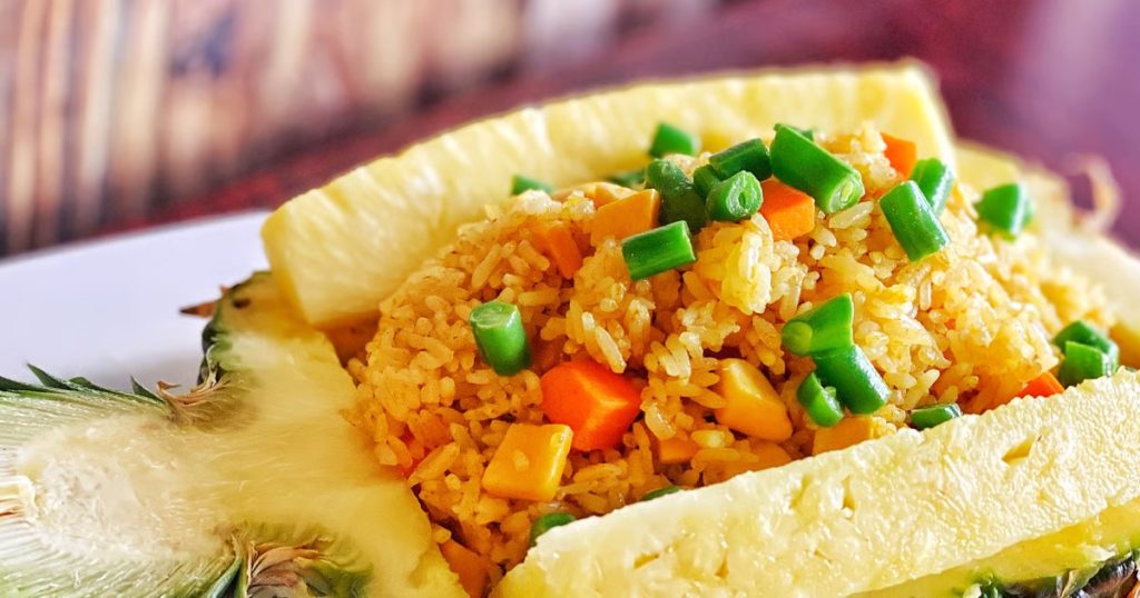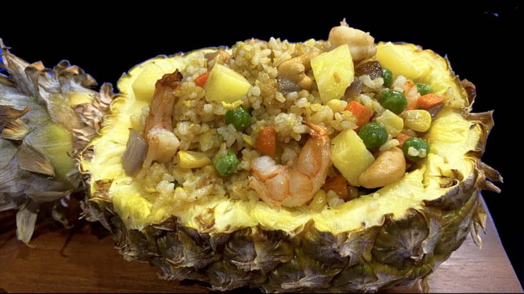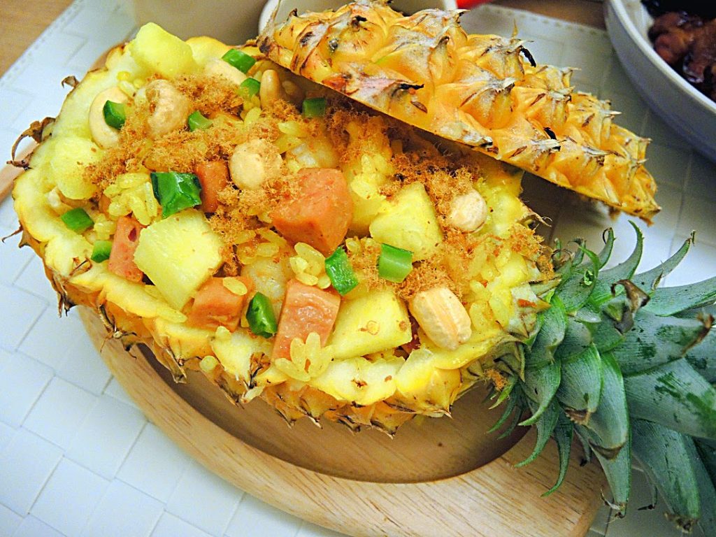 此菜品具有独特之处,将菠萝的鲜嫩果肉与鲜美的虾仁以及香脆的腰果一同进行炒制。在炒制的过程中,那酸甜的菠萝果香渐渐渗透到每一粒米饭之中,使得整道美食散发出诱人的香气。同时,这道菜的造型极为吸睛,无论是从色彩的搭配还是摆盘的设计上,都能够在第一时间吸引人们的目光。