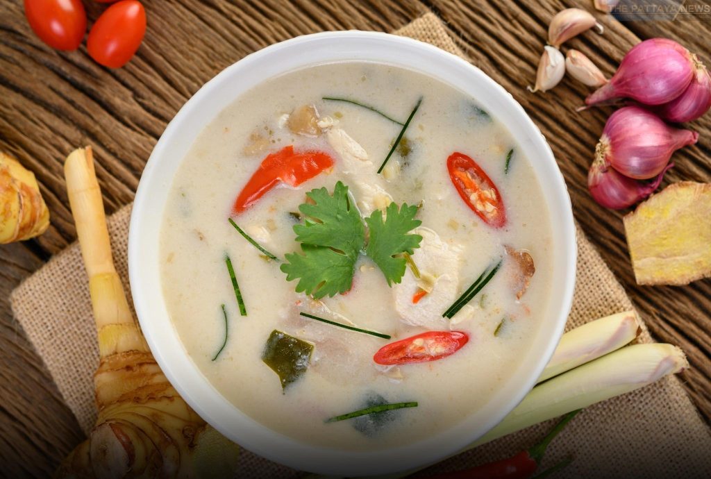 椰奶版本(Tom Kha Gai)更是别具一格。椰奶的加入为这道汤增添了温润的口感,使原本酸辣的味道更加醇厚和丰富。这种搭配不仅提升了汤的口感层次,还为食客带来了全新的味觉体验。