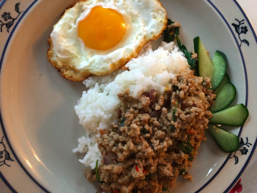 罗勒叶炒肉末配煎蛋,这道菜着实具有独特非凡的风味。罗勒叶尽情散发着极为浓郁的迷人香气,恰到好处地与鲜嫩无比的肉末实现了完美融合。在经过精心细致地炒制之后,味道呈现出香辣可口的美妙滋味,简直极其下饭。不管是在忙碌不已的工作日午餐时间,还是处于匆忙紧迫的晚餐时刻,它毫无疑问都是街头快餐的首选之一。其具备的便捷性以及令人赞叹的美味程度,使其能够在众多快餐选择当中脱颖而出,进而成为人们满足自身味蕾需求的绝佳之选。
