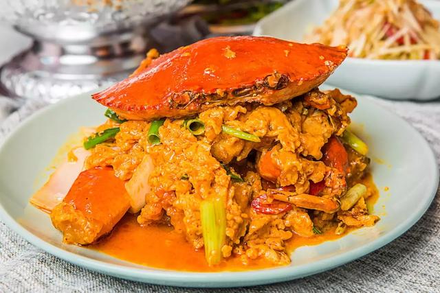 鲜嫩的蟹肉被浓郁的咖喱酱紧紧包裹着,其中椰香与各种香料美妙地交融在一起,散发出独特而诱人的香气。这样的组合在口感上极为丰富,无论是嗅觉还是味觉都能带来极大的满足。当与米饭搭配在一起时,更是相得益彰,米饭的清香与蟹肉咖喱的浓郁相互映衬,使得整体风味更上一层楼。