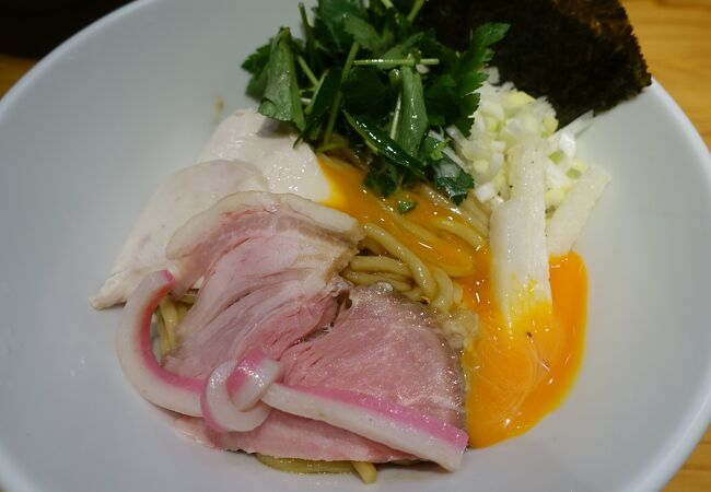 面看着虽然很简单,但是一口汤头喝下去,满满都是海的味道!非常鲜甜,配合着细面和低温慢煮的超嫩的鸡肉,很快就可以嗦完一碗面,连带喝完汤~