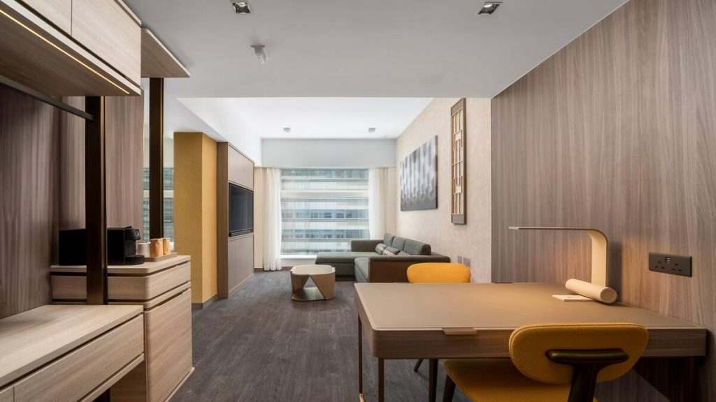 奕居的每个房间都设计得超级用心,简直像走进了一座艺术馆!设计师傅厚民将当地文化与现代工艺完美融合,从房间的家具到墙上的艺术品,每一处都充满创意和细节。尤其是那间80平米的城景房,简直美得让人窒息!从窗外望去,是香港迷人的城市天际线,白天阳光明媚,夜晚灯火辉煌,简直是私人定制的视角!