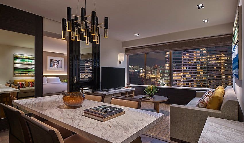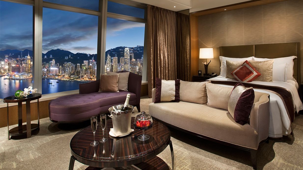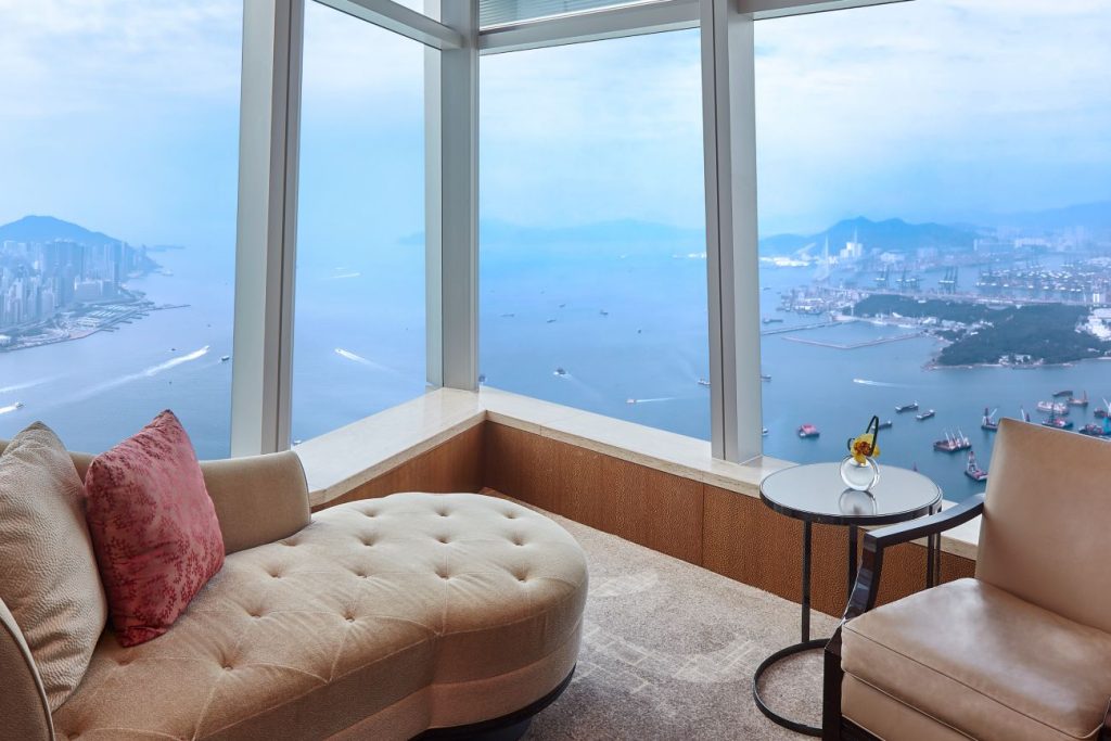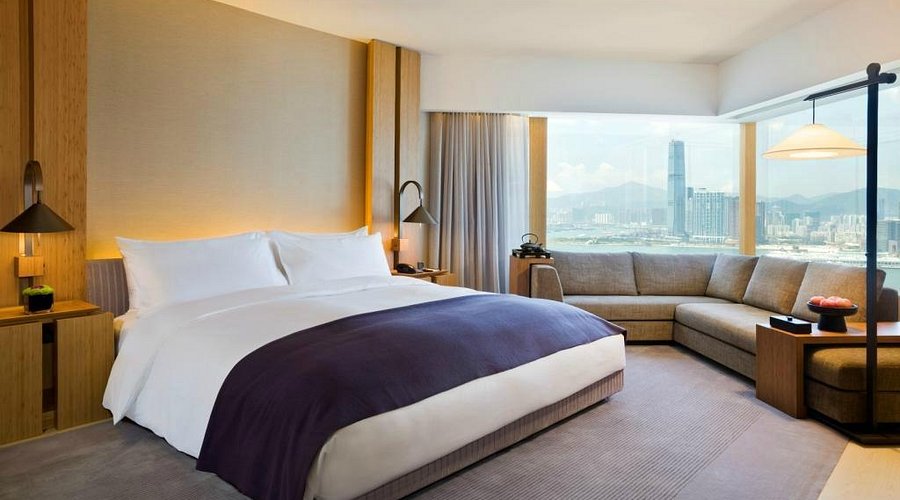 香港君悦的经典房型毫无疑问是海景房。因为它的海景房view超正,40平米在香港也绝对算宽敞。在君悦这个角度,中环在左手边、香港故宫等在左前方、尖沙咀在前方、会展中心在右下方,一个广角把维港的经典全数收进。