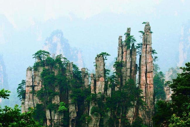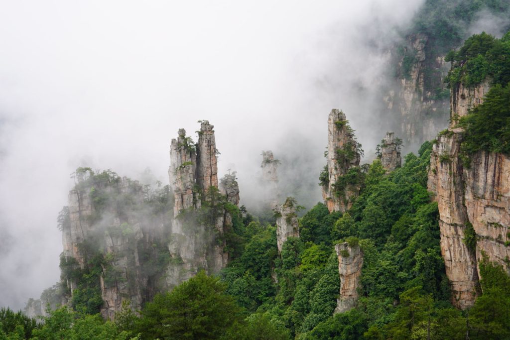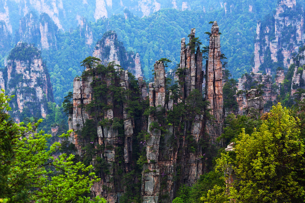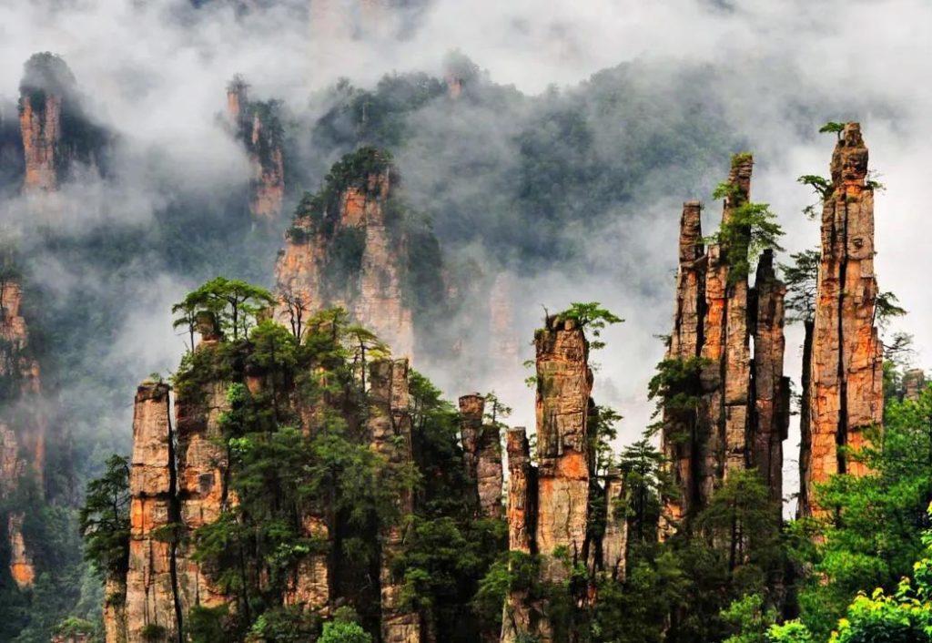 “奇峰三千,秀水八百”的代表!必去袁家界(《阿凡达》哈利路亚悬浮山取景地),站在迷魂台看云雾漫过山峰,像置身外星;还有天下第一桥,天然石桥横跨两座山峰,超震撼;金鞭溪沿溪而行,溪水清澈见底,能看到小鱼游过,适合带孩子玩。