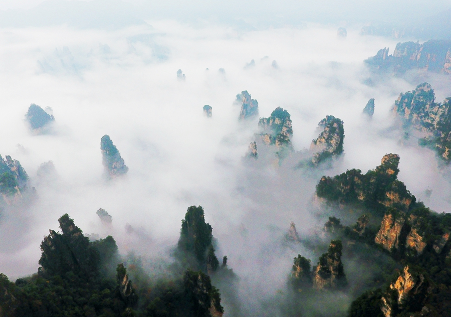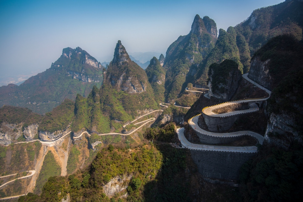 来这里一定要挑战玻璃栈道!踩在海拔1430米的透明玻璃上,脚下是万丈悬崖,心跳直接加速;还要坐世界最长的7455米索道,从山脚直达山顶,30分钟里俯瞰整个张家界城区和群山;最后去天门洞,看99道弯的盘山公路像银蛇缠绕山间,超壮观。