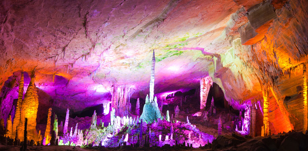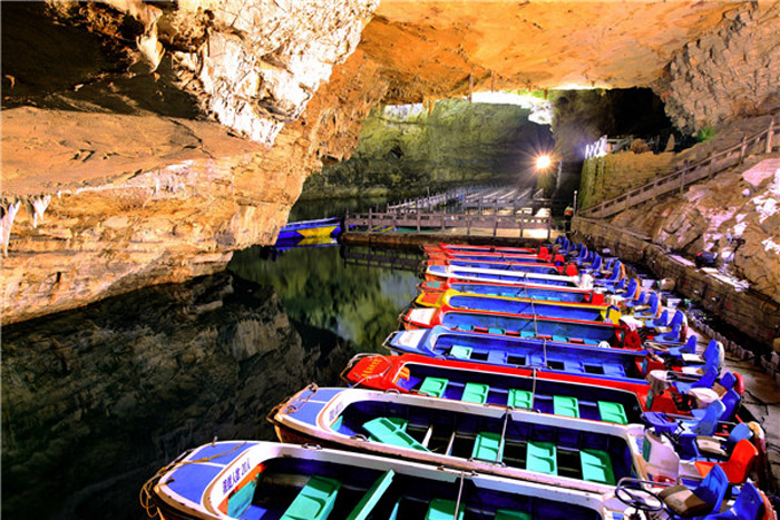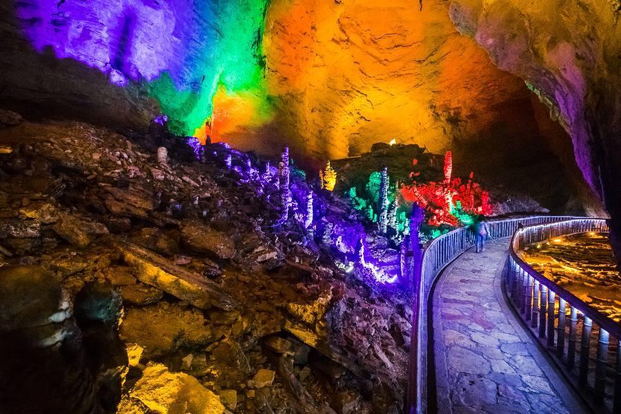 亚洲最长溶洞,地下魔幻世界。 亮点1:定海神针;19米高钟乳石,投保1亿元。 亮点2:响水河;乘船穿越地下暗河。