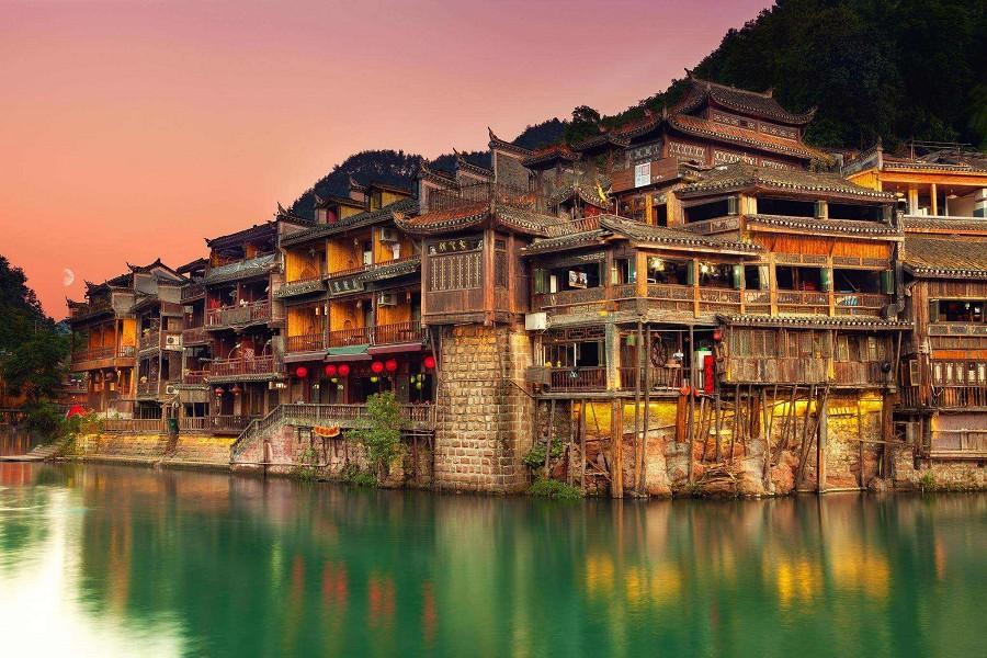 “湘西的不夜城”名不虚传!沱江两岸的吊脚楼亮灯后,倒影映在江里,像流动的星河;清晨的古城最舒服,没了游客的喧闹,走在青石板路上,能听到沱江的流水声。