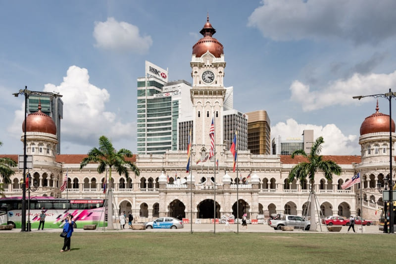 马来西亚的重要历史地标,1957年马来西亚脱离英国统治在此宣布独立。广场上有100米高的旗杆和殖民建筑群,欧式草坪与伊斯兰风格的苏丹阿都沙末大厦同框,景色独特。