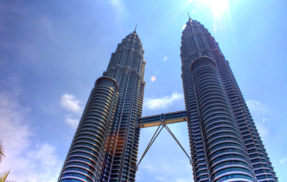 吉隆坡的地标性建筑,曾是世界最高双子塔,高452米,共88层。41层的天桥和86层的观景台可俯瞰全城,夜景灯光秀美。