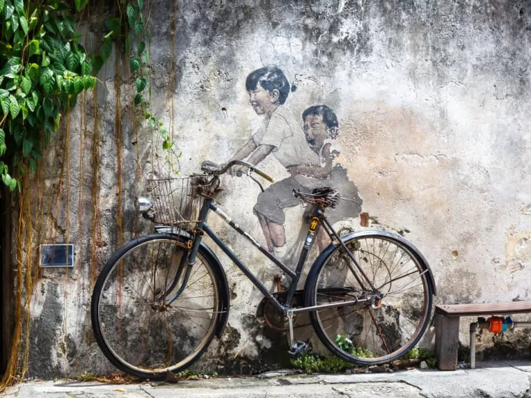 乔治市老城是世界文化遗产,租辆自行车找《姐弟共骑》壁画打卡,红墙骑楼与街头铁线画构成露天美术馆。姓氏桥的海上木屋藏着下南洋的往事,极乐寺的万佛塔融合中泰缅建筑风格,是东南亚最大的华人佛寺。登顶可眺山海风光。升旗山乘复古缆车10分钟登顶,可俯瞰槟城全景。红屋顶、槟威大桥与马六甲海峡的景致像闯入宫崎骏动画。