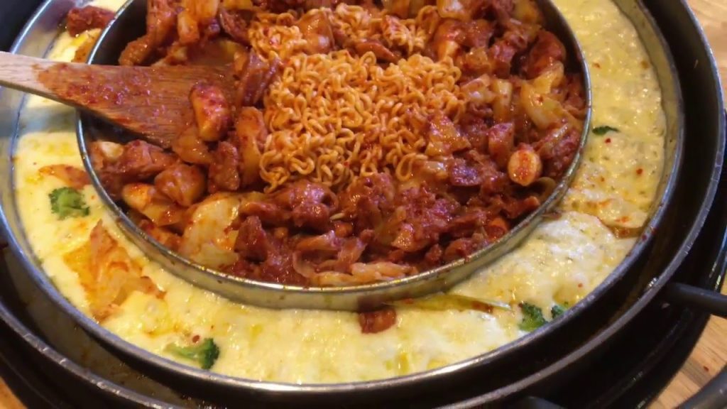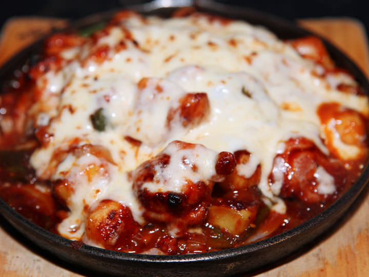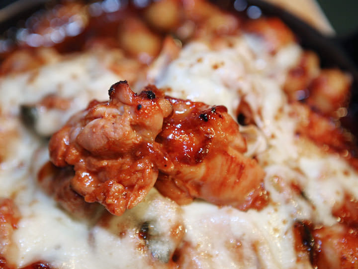 端上桌就香到上头!炖煮得软烂脱骨的鸡肉裹着浓郁韩式辣酱,红彤彤的酱汁裹着足量马苏里拉芝士,趁热拉丝能拉半米长~ 芝士的奶香中和了辣酱的鲜辣,每一口都裹着芝士的绵长和鸡肉的鲜嫩,配米饭能炫两大碗!