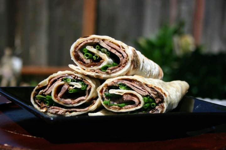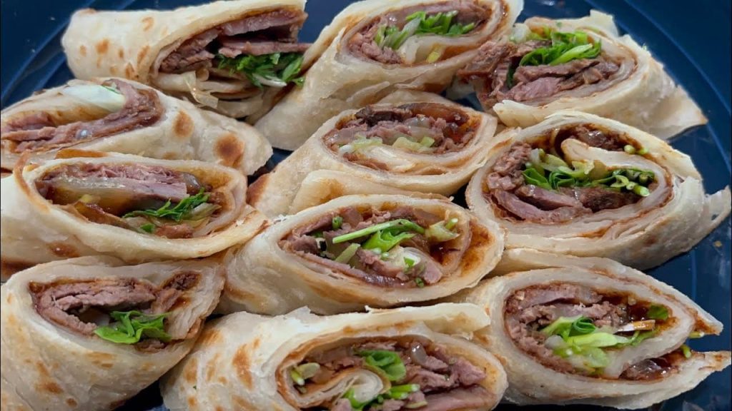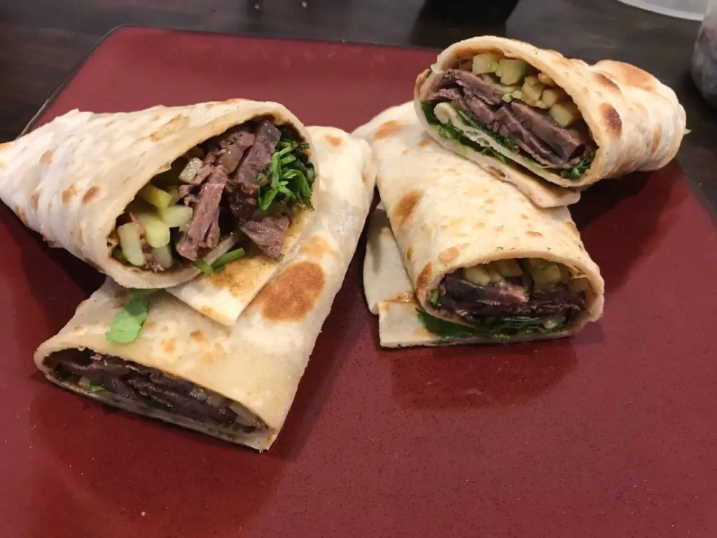 薄饼皮脆韧带劲,内馅是铺满的鲜嫩肥牛+清甜蔬菜,刷上秘制韩式甜辣酱,煎得边缘微焦。咬下去外皮咔嚓作响,肥牛的汁水瞬间迸发,甜辣鲜香在嘴里交织,薄薄一张根本不够吃!