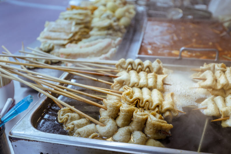 冬日街头必不可少的“鱼糕串”,一口热汤入喉,体温悄然攀升1℃,简直是冬天里的魔法美食,将鱼糕在汤里泡一泡再夹起,咬上一口,鲜香立刻在口中散开,再喝一口热汤,整个人都暖了。汤可以续杯,但需留意店主的表情。而且汤很热,小心烫嘴哦!