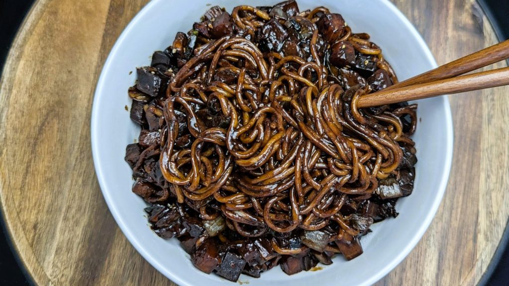经典韩式炸酱面的升级版!浓郁的黑酱裹着劲道面条,加入黑松露提香后层次感直接拉满~ 酱香醇厚不腻口,黑松露的独特香气萦绕舌尖,每一根面条都裹满酱汁,咸香回甘,越拌越上头。