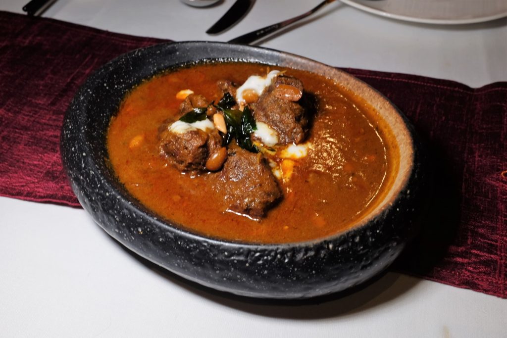 用椰汁做底料不会过多地放入辣椒,菜品里有牛肉、鸡肉或者鱼肉茄子、绿豆、和鲜椰汁、柠檬香草和 kroeung酱因法国文化的影响高棉红咖喱往往搭配面包一起食用。