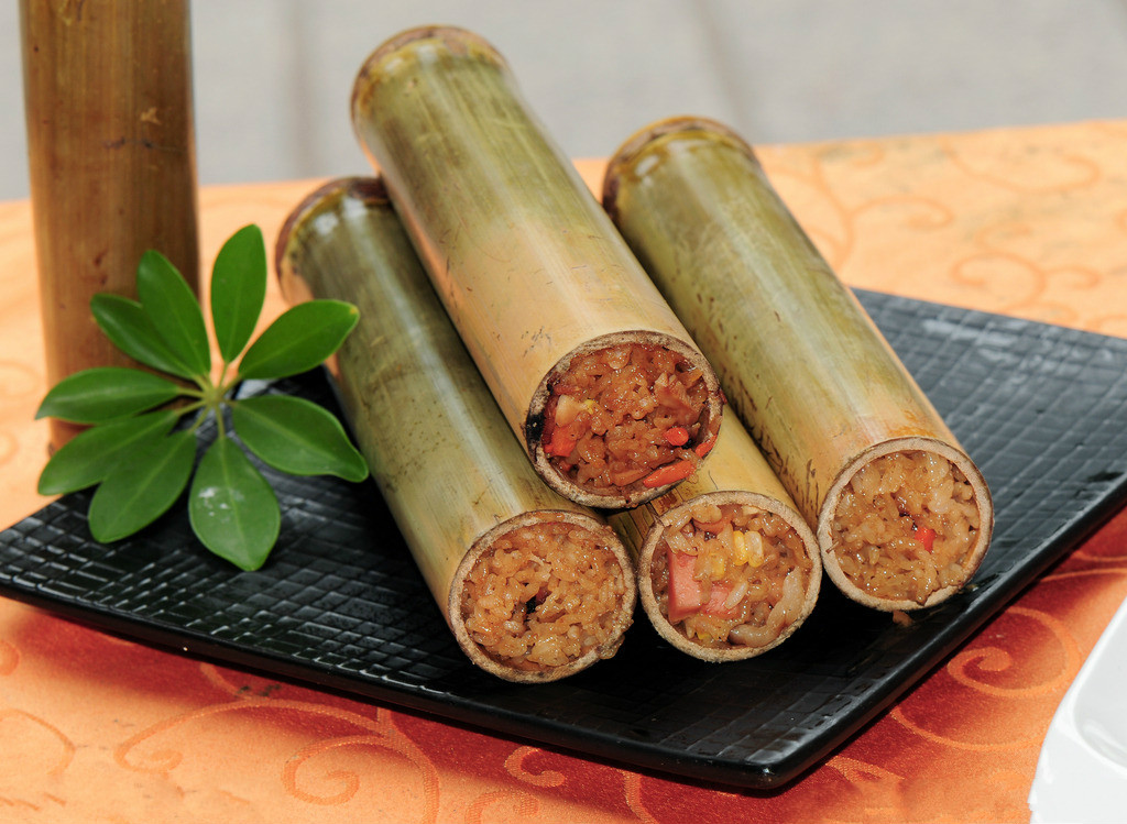 竹香萦绕的甜蜜糯米、椰奶、红豆混合,填进竹筒里用炭火慢烤,烤出的竹香渗入糯米中,掰开竹筒的一瞬间,甜甜的香气扑鼻而来,软糯香甜,简直是人间小确幸!