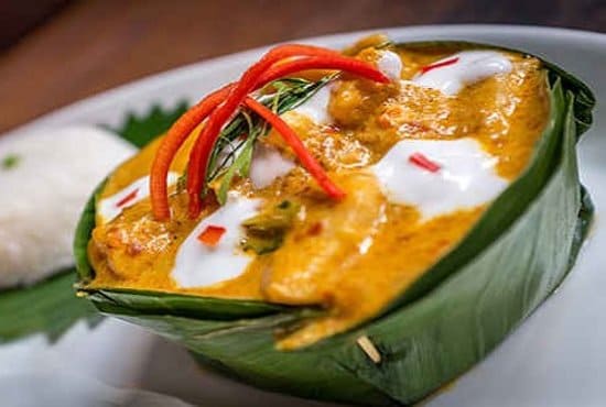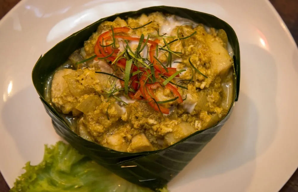 柬埔寨国菜,用在洞里萨湖里的去骨鱼肉加上椰汁、椰奶、柠檬叶各种香料调和而成,高级饭馆会把阿莫克鱼放在香蕉叶上蒸而街边小吃摊则是将其煮熟制成浓汤咖喱鱼而不是慕斯。