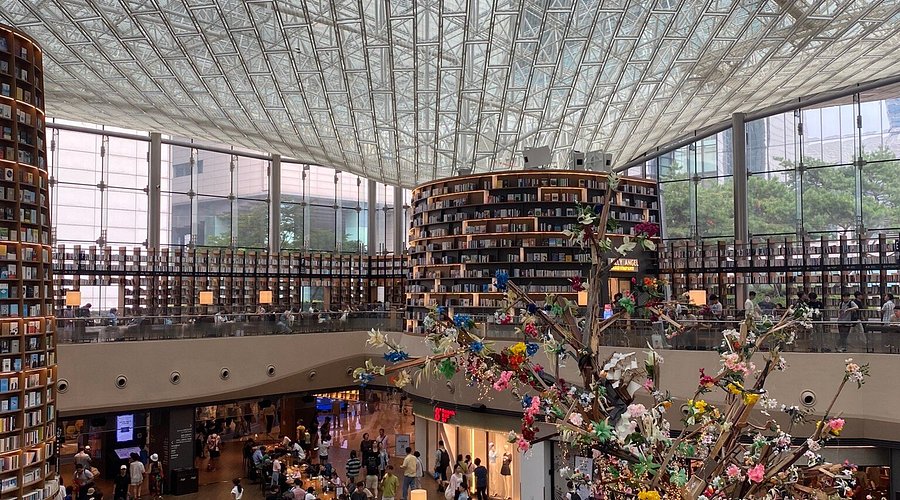 位于 Coex Mall 的星空图书馆非常值得一去。图书馆位于一个购物中心内,当你走进的时候,你也会被高耸入云的“书”墙震撼到。墙上摆放的书籍好像是从墙里长出来的,每一本书好像都在呐喊着:快来看我吧!