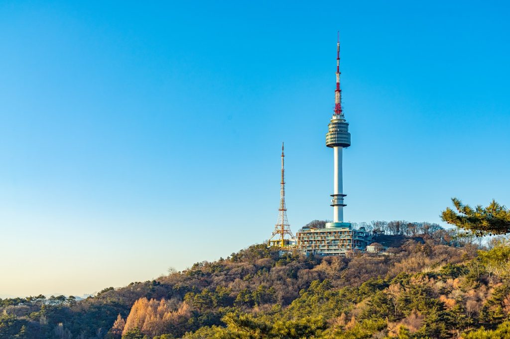 N 首尔塔其实就在南山公园里面,所以我把这两站算在了一起。去的那天天气炎热,白天逛景点已经让我筋疲力尽,即使没出行前就计划在少许凉爽的傍晚时分上山,也再没有勇气选择徒步了,最后搭乘了公交车 1A 上山,直达 N 首尔塔。