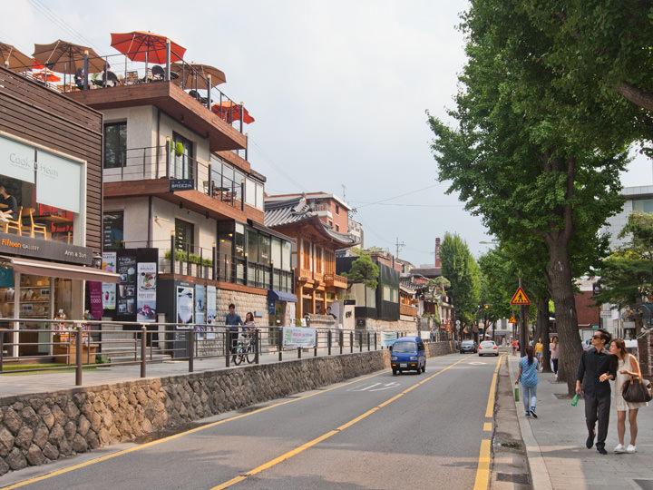 三清洞路和北村韩屋村距离不是很远,穿过一段坡路就可以从北村韩屋村走到三清洞路了。