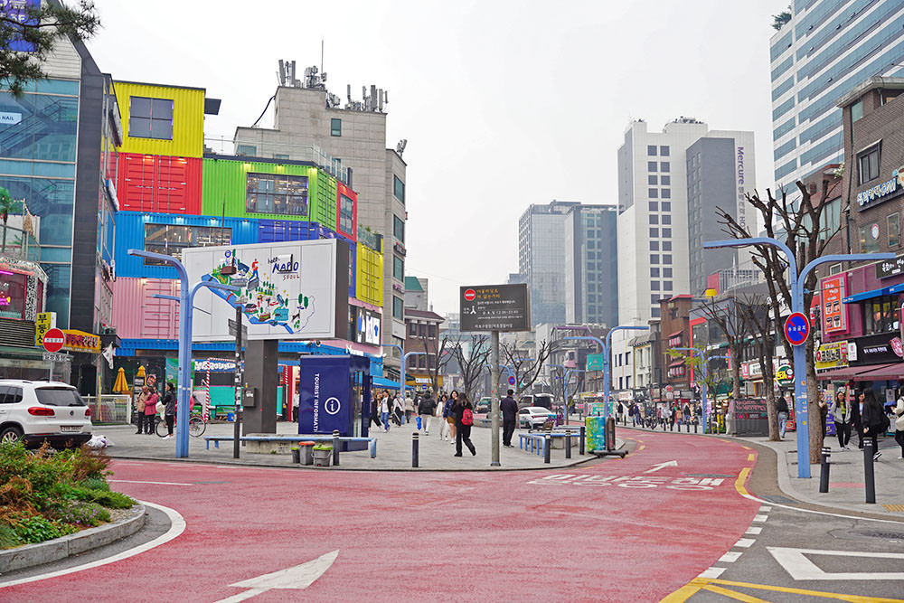 弘大购物街位于弘益大学附近。购物街很长,步伐轻快的话从头走到尾也需要将近半个小时左右才能逛完。购物街上有各种时尚小店,潮流衣饰,可爱摆件,应有尽有。除了购物,美食当然也少不了,特别是韩国特色餐饮,从冷面到韩式烧烤,从部队火锅到韩式炸鸡,每一个小店都能把你的味蕾全部打开,尽情享受一顿具有本地特色的美味佳肴。