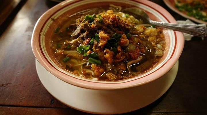 用牛头肉、骨髓与筋膜慢火熬出的汤底,浓稠得几乎能拉丝,胶质丰厚、香气厚重。粗面条在汤中浸润,吸满那股黏唇的浓香。每家摊贩都有一勺独门的“棕色酱汁”——带点蒜香、酱香,还有说不出的深味,是整碗面的灵魂。
