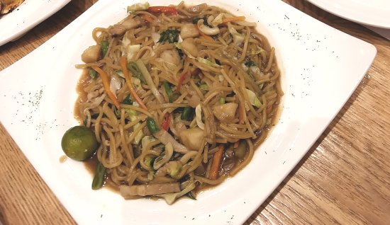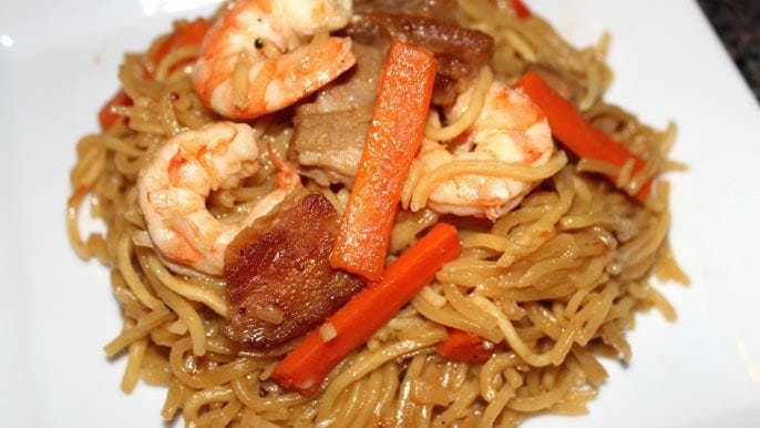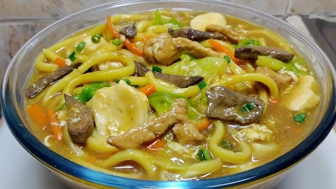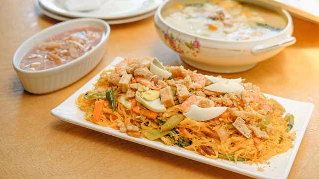 这道面以菲律宾民族英雄埃米利奥·阿奎纳多(Emilio Aguinaldo) 之名命名。蛋面与米粉在锅中共舞,吸满虾仁、猪肝与蔬菜的香气;最后倒入一点糯米浆,轻轻勾芡,让汤汁泛着柔滑的光泽,但这种古老的做法已难得一见。