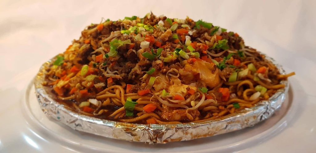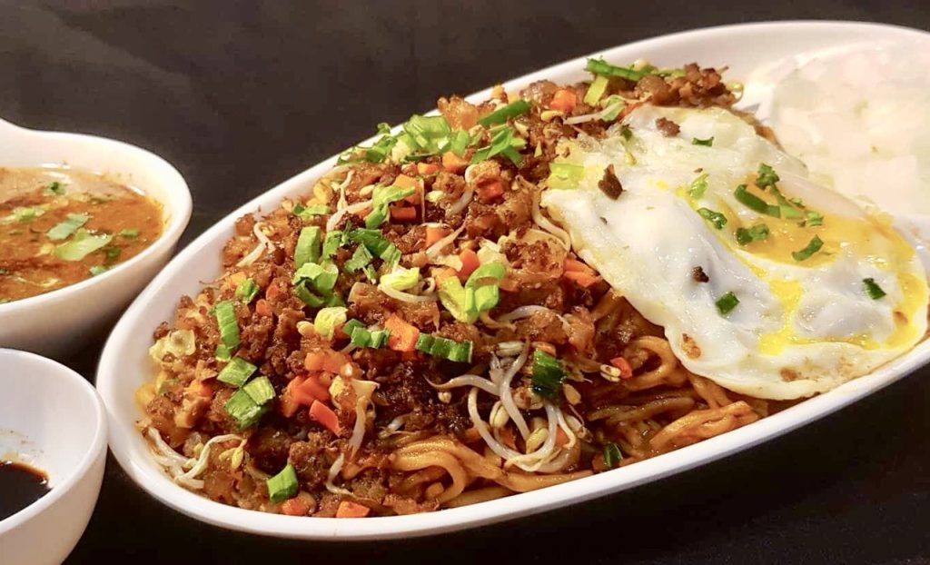 来自北吕宋图格加劳(Tuguegarao)的豪迈之作。粗实的面条被热气腾腾地盛出,上面盖着炒香的牛肉末、豆芽与葱花,香气扑鼻。最诱人的,是那颗刚熟半凝的蛋,金黄的蛋液微微颤动,流入面中。