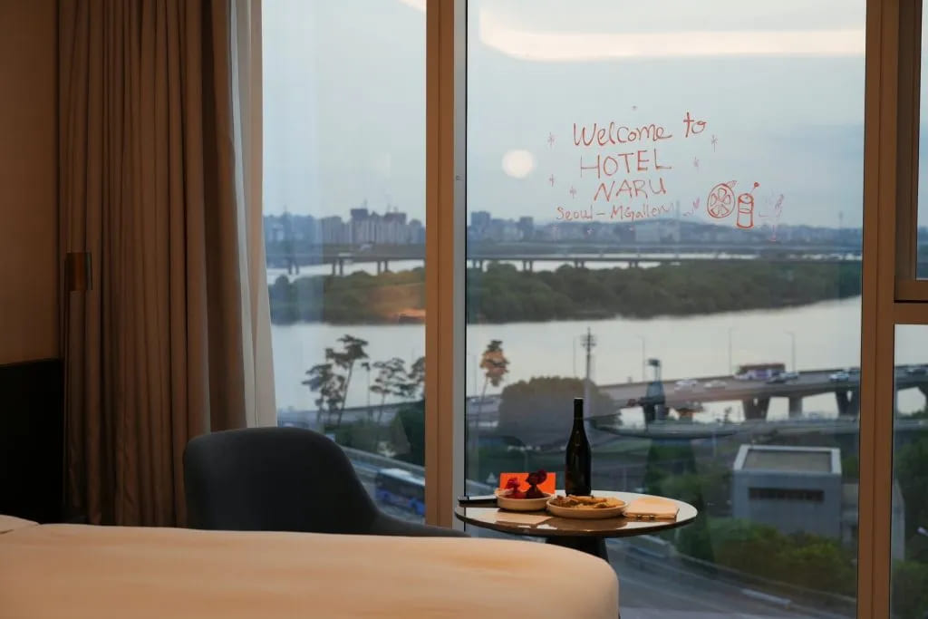 位于汉江沿岸,可以从酒店看到对岸的汉江公园,距离最近的麻浦地铁站约300米。