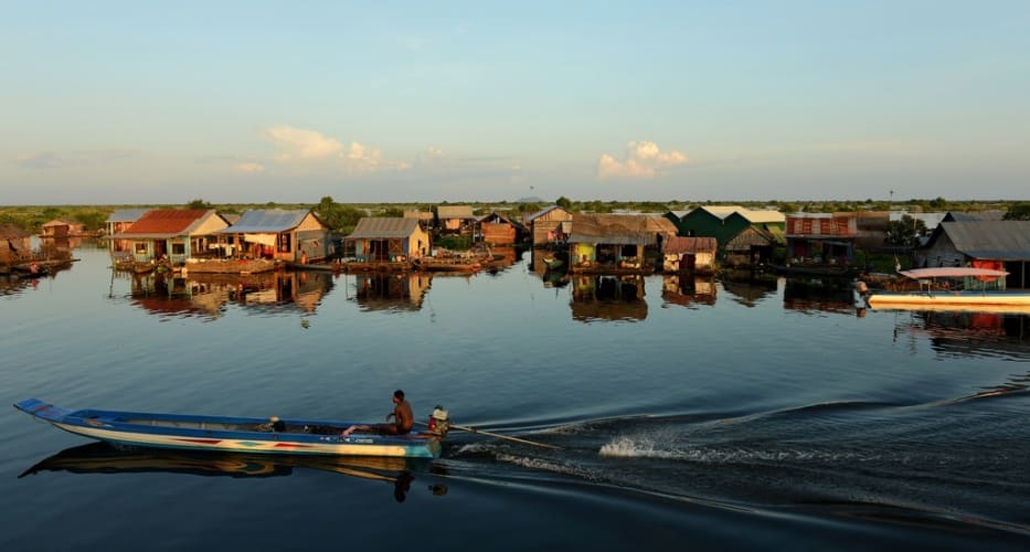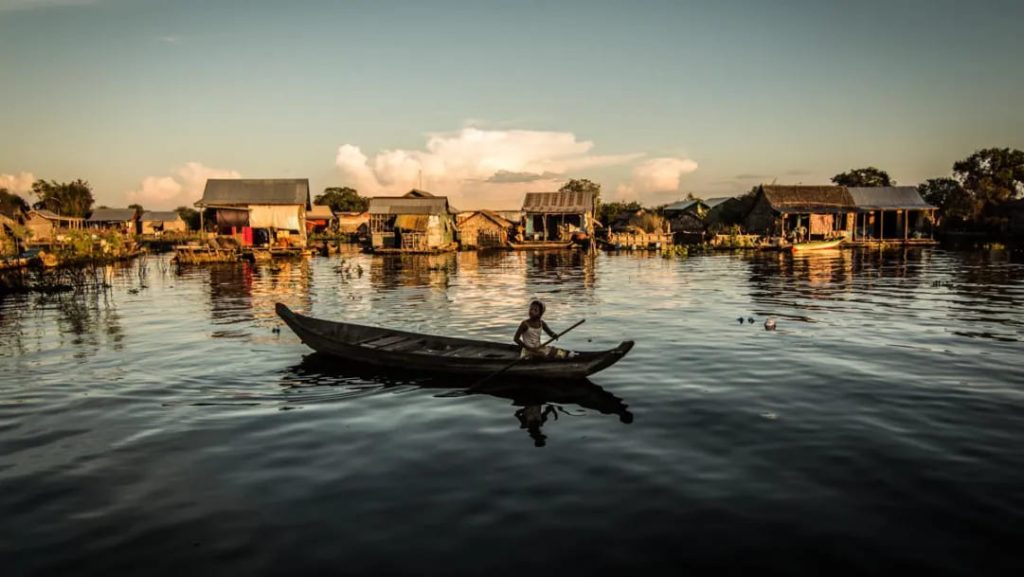 洞里萨湖是东南亚最大的淡水湖,也是柬埔寨的 “生命之湖”。它通过洞里萨河与湄公河相连,湖水面积会随着季节变化而发生显著变化。旱季时,湖水面积约为 2700 平方公里,雨季时则可扩大到 16000 平方公里。湖边有许多水上村庄,村民们依水而居,形成了独特的水上生活方式。乘坐游船游览洞里萨湖,可以欣赏到美丽的湖光山色,还能近距离观察水上村庄的生活场景,了解当地渔民的生活习俗。在游船上可以看到村庄里有学校、商店、寺庙等各种设施,人们在船上进行各种日常活动。