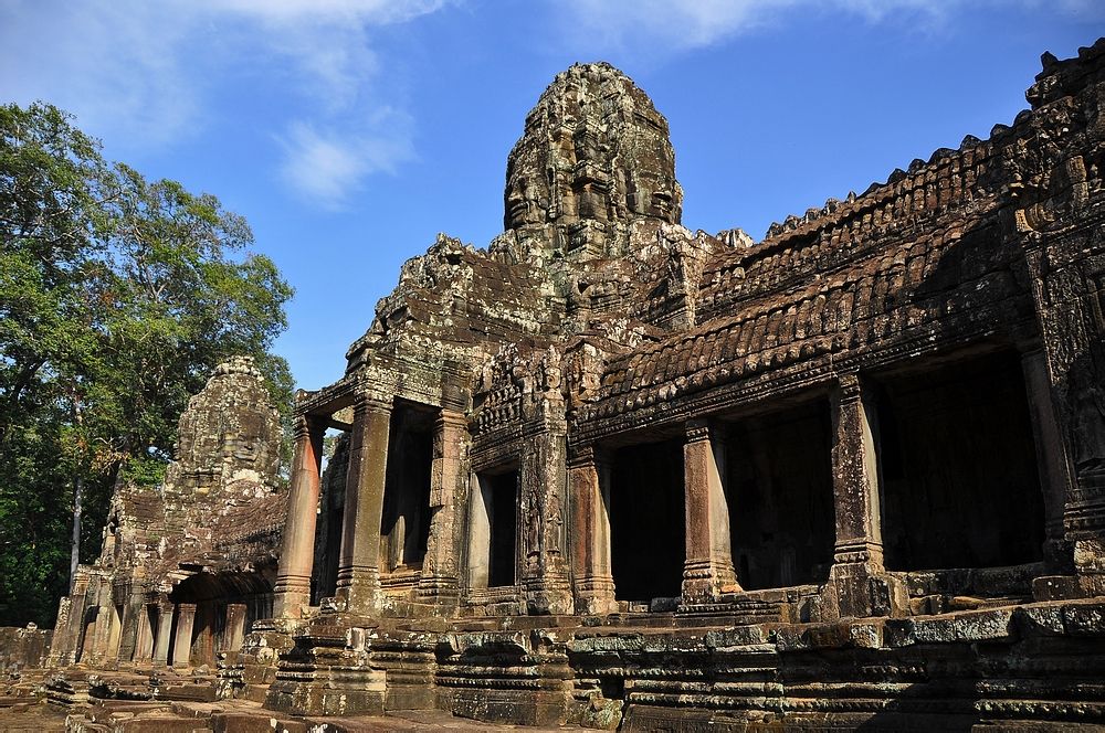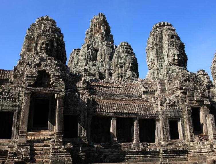 巴戎寺位于吴哥通王城的中心,是阇耶跋摩七世为纪念战争胜利而建。寺庙最著名的是其众多面带微笑的佛像,这些佛像雕刻在寺内的石塔上,被称为 “高棉的微笑”。佛像的微笑表情神秘而慈祥,仿佛在诉说着千年的历史。巴戎寺的建筑风格独特,由 54 座大大小小的石塔组成,每座石塔上都有四面佛像。