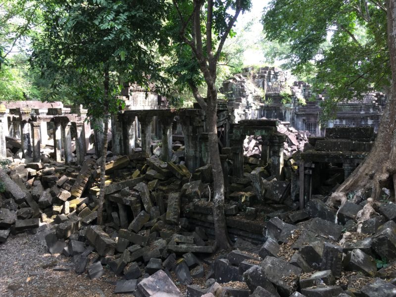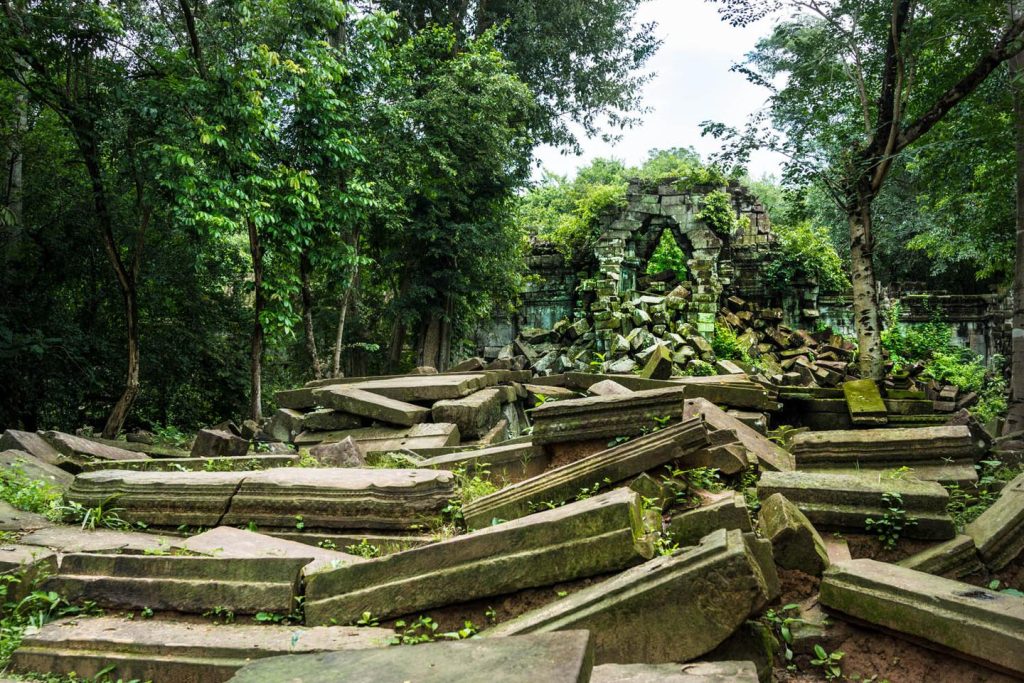 崩密列位于暹粒以东约 40 公里处,是一座被丛林严重侵蚀的古寺庙,与吴哥窟大致建于同一时期,但由于未被完全修复,保留了一种原始而神秘的氛围。寺庙内的建筑大多已坍塌,石块散落一地,树木在废墟中生长,树根与石块相互缠绕,形成了独特的景观。走进崩密列,仿佛穿越回了古代,能感受到岁月的沧桑和自然的力量。