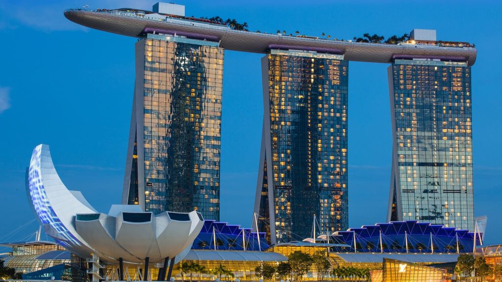 滨海湾地标,也是新加坡的象征。自2010年开业以来,吸引了全球亿万游客光临。金沙是一座综合娱乐城,包括酒店、购物中心、美食广场、艺术和科学博物馆、歌剧院以及DC等。