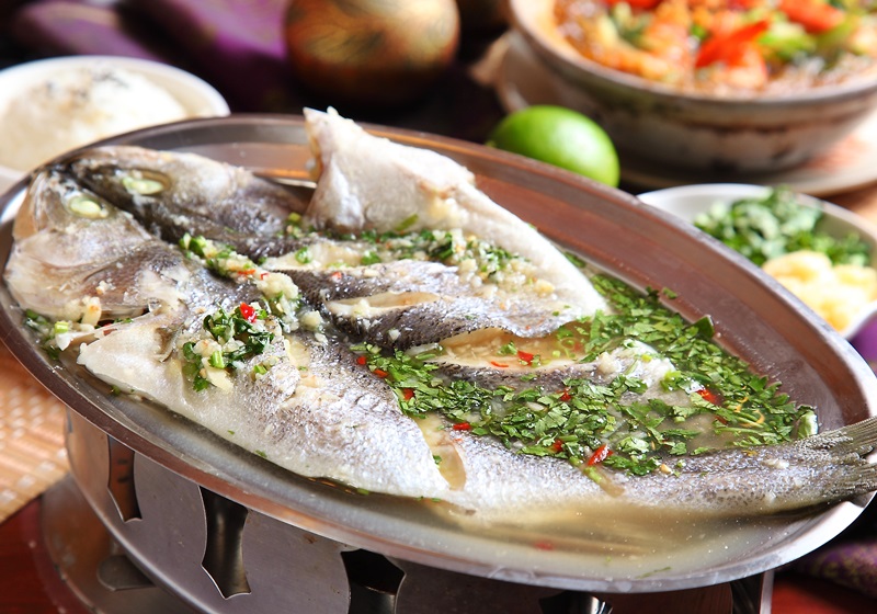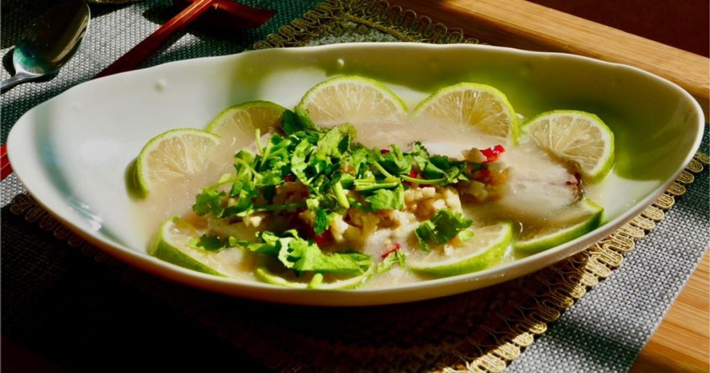 它用的是本地肉嫩刺少的海鲈鱼,加入用泰国青柠、鱼露、小米辣等佐料调和的秘制青柠酱。