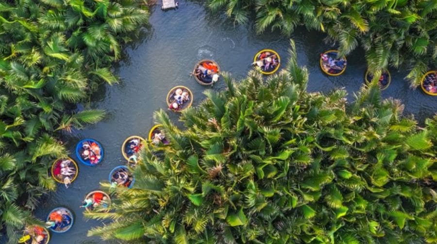 被聯合國教科文組織列為世界遺產的會安,是一個歷史悠久的港口小城,而位於會安的Cam Thanh村因其大量的椰子樹被認為是會安的綠肺,迷人的位置經常與著名的湄公河三角洲相提並論。乘坐可愛的籃子船欣賞當地人的搖籃船表演和網釣,在靜謐的椰子林裡拍下最好的森林風光。