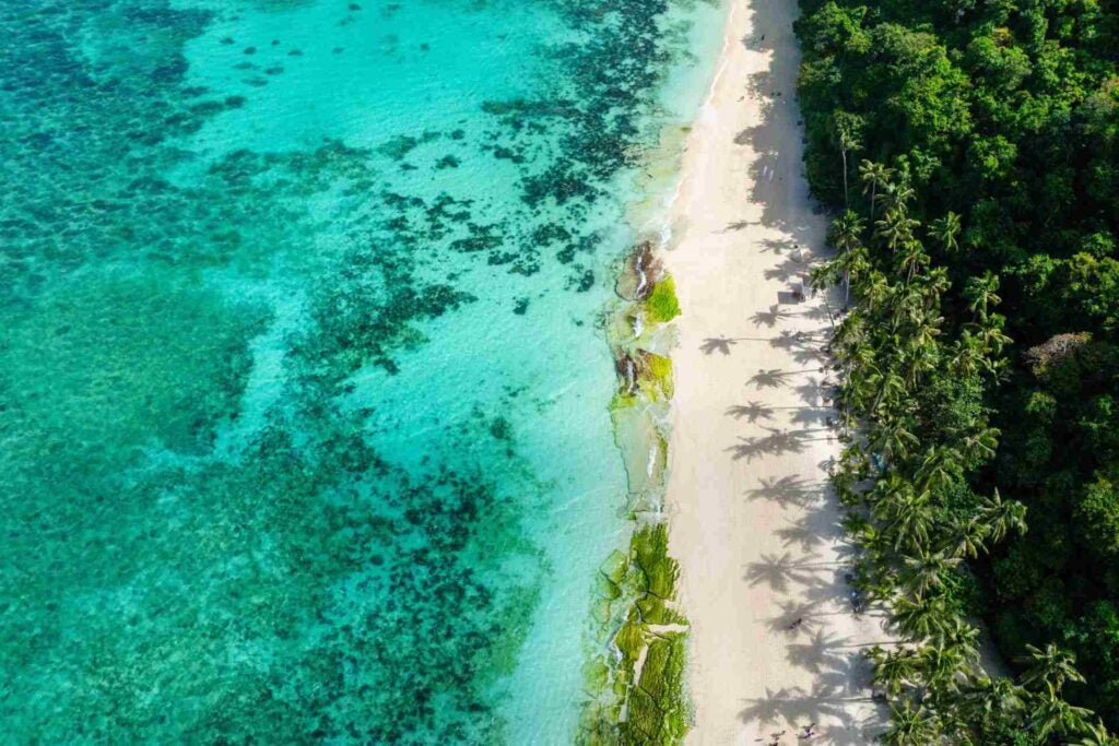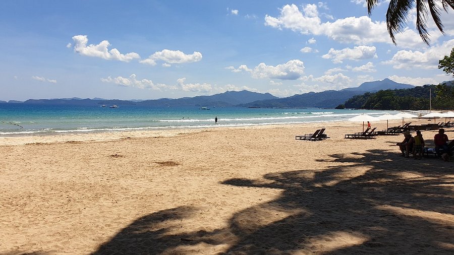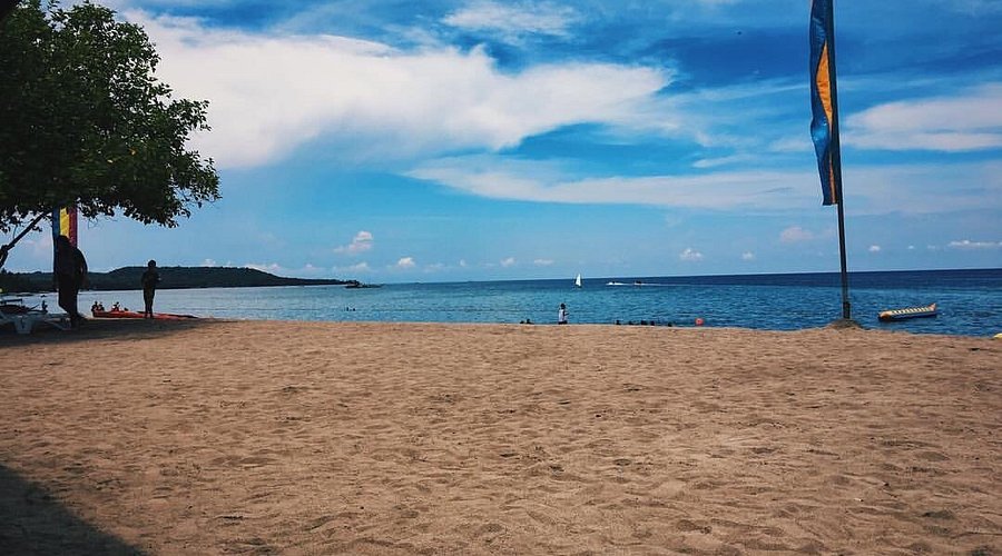 细腻如面粉的沙滩与透明的海水相映成趣,椰林成排,充满了热带海岛的氛围。傍晚时分,这里是观赏日落和风帆的绝佳位置。