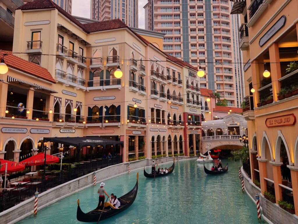 坐落在麦金利山(McKinley Hi),离BGC很近的地方。整个商圈就像是缩小版的欧洲小镇,置身其中,仿佛你真的就行走在威尼斯水城之中,忘记了自己其实身在繁忙的马尼拉。整个购物中心看起来很像是威尼斯特色的主题公园,绵长的运河从小镇中间穿过,设计和结构都非常有创意,满足你对“小意大利”的一切想象。