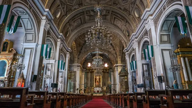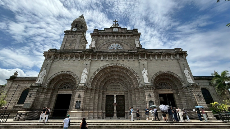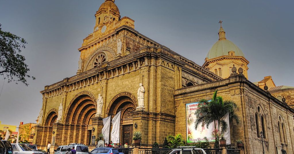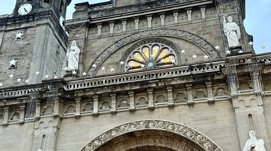 是一座历史悠久的天主教教堂,位于菲律宾首都马尼拉市中心。这座教堂建于19世纪,是菲律宾最古老的天主教教堂之一,也是马尼拉市的标志性建筑之一。马尼拉大教堂的建筑风格独特,融合了多种不同的元素,包括哥特式、文艺复兴式和巴洛克式等。教堂的外观采用了石灰石和白色瓷砖,给人留下了深刻的印象。教堂内的装饰也非常精美,包括彩色玻璃窗、雕刻精美的木制座椅和华丽的吊灯等。