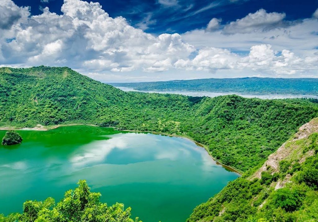 湖长24公里,宽14公里,水深170米,由一个巨大的火山口形成。湖中有一小岛,岛上有一个世界上最小的火山----塔阿尔火山。火山中间有一个火山湖,形成湖中有山、山中有湖的奇丽景色。环绕塔阿尔火山的湖泊,风景如画,适合划船和拍照。塔阿尔火山两年前有一次爆发,目前火山已被火山灰覆盖,按照规定不能登陆火山,可以在附近环湖游玩观赏,领略其独特风貌。