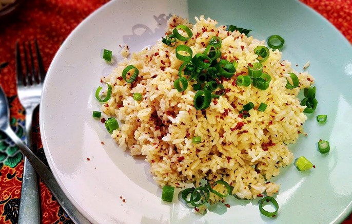 菲律宾蒜香炒饭(Sinangag)是菲国经典平民小吃,传统上多当作早餐,主要用料是隔夜饭及大蒜,肉和蛋皆摆一旁佐食,而不加入饭中一起拌炒。这道炒饭仅靠切碎的蒜粒,煎炒至金黄,再和隔夜饭一同拌炒,蒜香满溢,还可加入少许米酒,增添香气和几分熟悉的快炒台味。