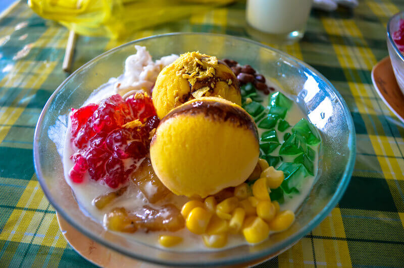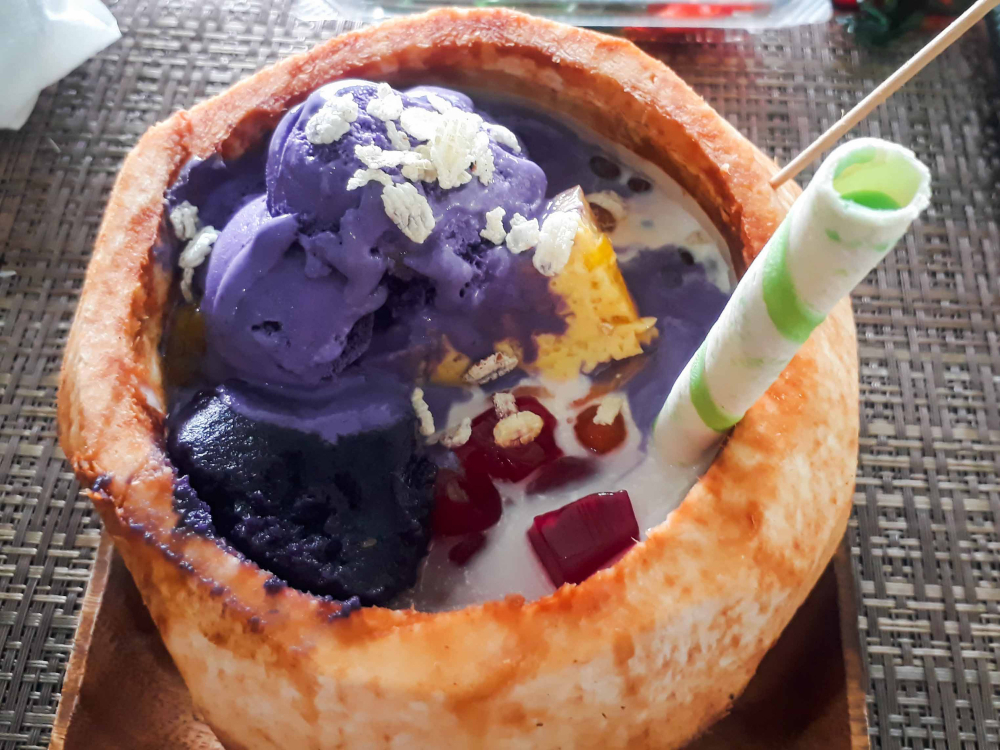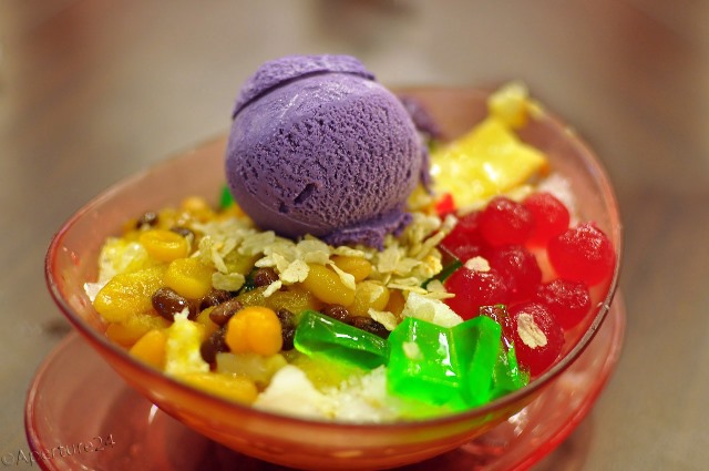 哈喽哈喽(Halo-Halo)是菲律宾的特色甜品,主要配料包含甜酱豆、椰肉、甘薯、布丁、榴莲、芭蕉、椰子片、糖梅果、紫色山药果酱及冰淇淋等多种食材,常以碎冰、牛奶为基底。