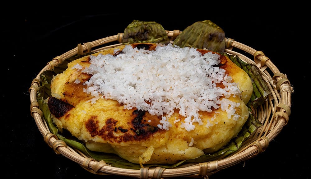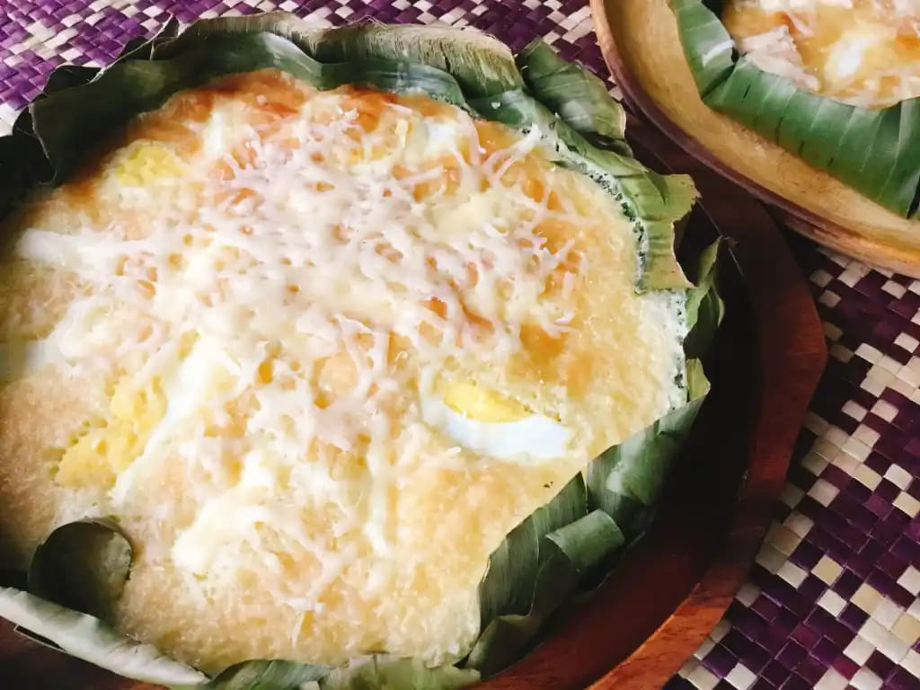 比宾卡米糕是菲律宾传统甜点,以米粉、椰奶为核心原料。该食品在菲律宾圣诞节期间作为早餐食用,尤其在教堂午夜弥撒(Simbang Gabi)结束后,多由教堂周边摊贩出售。传统制法采用香蕉叶包裹面糊并以粘土烤箱烤制,现代版本可能简化容器使用方式。其常与紫色米糕“puto bumbong”共同售卖。